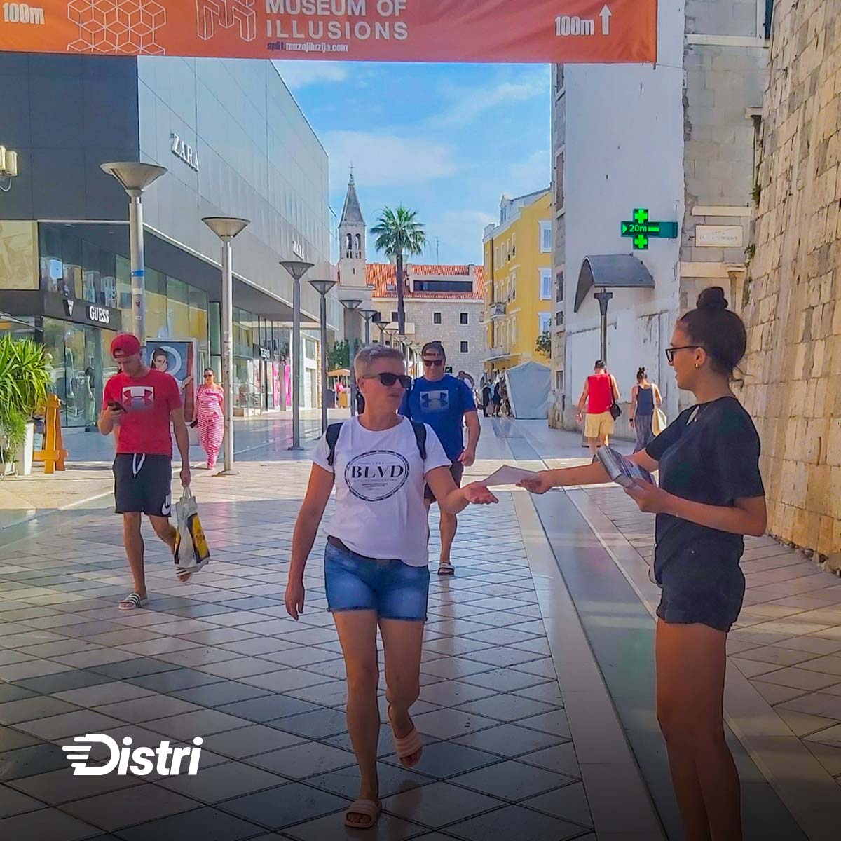 Dijelite letak iz ruke u ruku izravno prolaznicima na najfrekventnijim lokacijama ili targetirajte svoju ciljanu skupinu na posebnim mikro-lokacijama. Osim letaka dostupna je i usluga podjele promotivnih materijala i proizvoda.